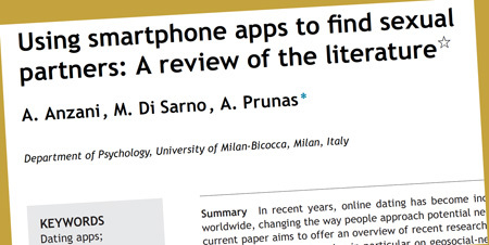 “Using Smartphone Apps to Find Sexual Partners: A Review of the Literature,” A. Anzani, M. Di Sarno, and A. Prunas [pictured here], Sexologies, vol. 27, no. 3, July–September 2018, pp. e61-e65.
