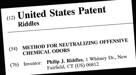 “Method for neutralizing offensive chemical odors,” U.S. Patent 6718914, issued to Philip J. Riddles, April 13, 2004. The patent document specifies: