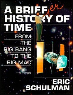 Eric Schulman’s 60-second-long History of the Universe began as a print piece (“A History of the Universe in 200 Words or Less,” in the Jan/Feb 1997 issue of the Annals of Improbable Research), had its first public performance as part of the 1997 Ig Nobel Prize ceremony, was expanded into book form (a publisher, in the audience that night, solicited Schulman on the spot to write it), and has been performed many times.