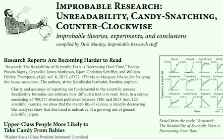 Unreadability, candy-snatching, and other improbable research