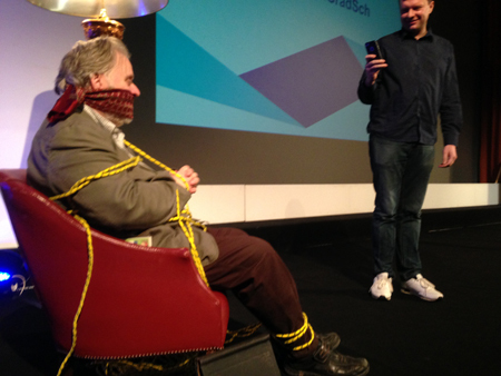 Colgyn performed a dramatic non-reading of several poems by William McGonagall, in the midsts of spending the entire evening on stage at Imperial College, gagged, and bound to a chair.
