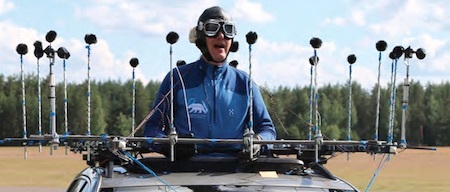 Details emerge in the study “Effects of flow gradients on directional radiation of human voice,” Ville Pulkki [pictured here, performing the experiment], Timo Lähivaara, and Ilkka Huhtakallio, The Journal of the Acoustical Society of America, vol. 143, no. 2, 2018, pp. 1173-1181. (Thanks to Lauri Savioja for bringing this to our attention.) The authors, at Aalto University and the University of Eastern Finland, report: