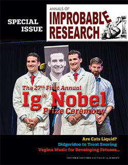 The libretto is also included in the special Ig Nobel issue (vol. 23, no. 6, November/December 2017) of the magazine Annals of Improbable Research.