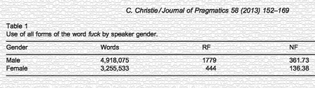 “The Relevance of Taboo Language: An Analysis of the Indexical Values of Swearwords,” Christine Christie, Journal of Pragmatics, vol. 58, 2013, pp. 152-169. The author explains: