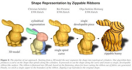 “Shape Representation by Zippable Ribbons,” Christian Schüller, Roi Poranne, and Olga Sorkine-Hornung, arXiv:1711.02450v1, November 7, 2017. The authors, at ETH Zürich, Switzerland, explain: