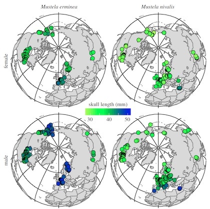 [We quantified] the effect of location, Julian day, age and sex on the length and depth of 512 and 847 skulls of stoat (Mustela erminea) and weasel (M. nivalis) specimens collected throughout the northern hemisphere…. Standardized braincase depths of both species peak in their first summer, then decrease in their first winter, followed by a remarkable regrowth that peaks again during their second summer.