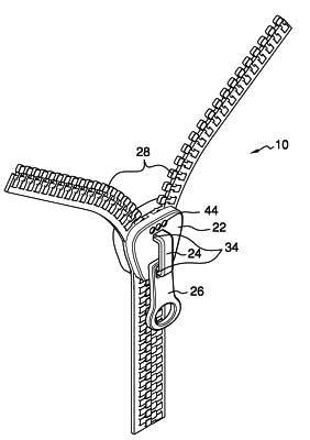 “Various types of zippers are known in the prior art. However, what has been needed is a musical zipper including a zipper having a slider, a continuous C-shaped flap having a pair of outer ends attached to a front surface of the slider, a pull tab engaging the flap, a pair of interlocking teeth having a first interlocking member and a second interlocking member, a speaker disposed on the front surface of the slider, and a sound chip disposed within the slider. What has been further needed is for the slider to be configured to travel from a first end of the zipper to a second end of the zipper to connect the first interlocking member with the second interlocking member and for the slider to be configured to travel from the second end of the zipper to the first end of the zipper to disconnect the first interlocking member from the second interlocking member. Lastly, what has been needed is for the sound chip to be configured to play a musical tune when the sound chip is activated.“