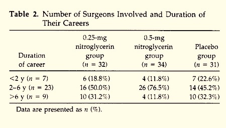 The study includes a most curious Table 2, which is labeled “Number of Surgeons Involved and Duration of Their Careers”: