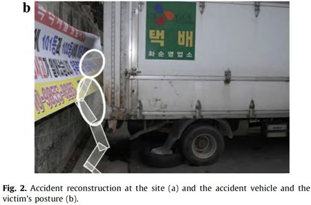 “Pedestrian accident analysis with a silicone dummy block,” Youngnae Lee, Sungji Park, Seokhyun Yoon, Youngsu Kong, and Jae-Mo Goh, Forensic Science International, vol. 220, no. 1, 2012, pp. e13-e16. The authors at the National Forensic Service (NFS), Seoul, South Korea, report: