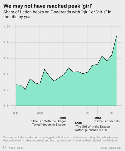 Who are these girls? Why are there so many of them? Books with “girl” in the titles make up a tiny fraction of all the books published in a given year, but they appear again and again on the bestseller lists. Other people have written about this trend, often with great eloquence, but none of them were backed by a data set. Using the database at Goodreads, the popular social networking website for readers, we set out to change that. A number of patterns emerged in our analysis: The “girl” in the title is much more likely to be a woman than an actual girl, and the author of the book is more likely to be a woman. But if a book with “girl” in the title was written by a man, the girl is significantly more likely to end up dead….