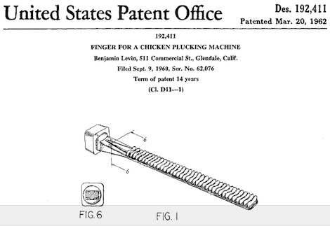 This is a finger for a chicken-plucking machine, as shown in the patent granted in 1962 for a finger for a chicken-plucking machine.