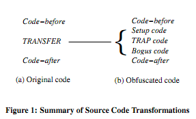 “Binary Obfuscation Using Signals,” Igor V. Popov, Saumya K. Debray, Gregory R. Andrews, 16th USENIX Security Symposium, pp. 275–290 of the Proceedings. The authors are, or were, at the Department of Computer Science, The University of Arizona, Tuscon.