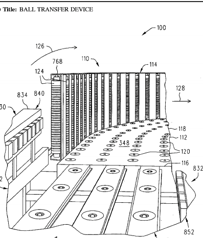 Roland Mishmash of Pueblo, Colorado, is coinventor of the device described in European Patent EP1825155A2, called a “Ball Transfer Device“. Here’s a technical drawing from the patent document: