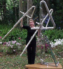 Paige Dashner Long [pictured here], Director of the Metropolitan Flute Orchestra in Summer Residence at New England Conservatory: “This unique instrument is very versatile, and fills the gap between the Contrabass and the double contrabass. In choirs it supports the Contrabass, and it literally propels the double contrabass.”