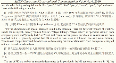 “A Study of Chinese-English Code-switching in Chinese Sports News Reports,” Chun-xuan Shen, Cross-cultural Communication, vol 6, no 4 (2010). (Thanks to investigator Catherine Caldwell-Harris for bringing this to our attention.) The author explains that: “This paper reports a study of Chinese-English code-switching in Chinese sports news reports with an aim to provide a better understanding of the linguistic features of Chinese-English code-switching.”