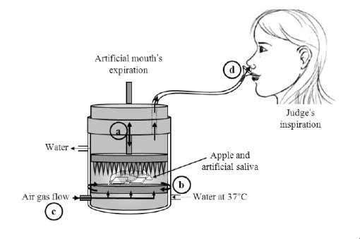 Thus the need for a ‘Mouth to Nose Merging System’ which they have designed and experimentally validated. Experiments were conducted with a human judge evaluating the mouth|nose and palatability of apple slices in artificial saliva.