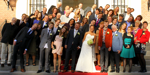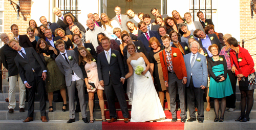 Rolf Zwaan and Anita Eerland could not travel to Harvard to collect their 2012 Ig Nobel Psychology prize for their study “Leaning to the Left Makes the Eiffel Tower Seem Smaller“. They had an earlier appointment they did not want to cancel: getting married— to each other. Right after their wedding ceremony in the Netherlands they conducted an Ig Nobel experiment, with their wedding guests. We proudly present the pictures here, thanks to Ig Nobel winners Rof Zwaan and Anita Eerland, and courtesy of wedding photographer Anja Euser. (Their co-winner Tulio Guadalupe did travel to the Ig Nobel ceremony, where he accepted the prize for the trio.)
