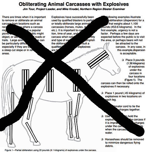 That disposal method — the one that will not used in this case — is specified in the document ”Obliterating Animal Carcasses with Explosives”: