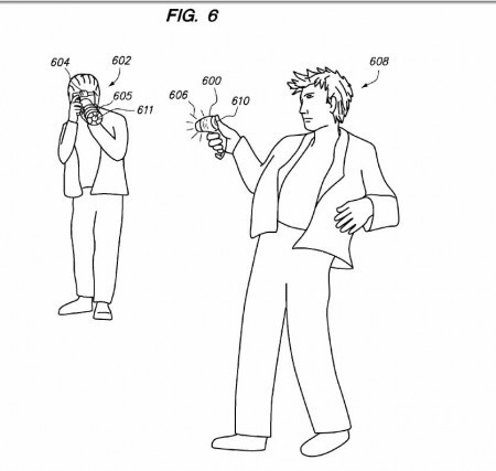 “ … as shown in FIG. 6, a celebrity 608 detects by visual observation that a picture is being taken by a paparazzo 602 having access to a camera 604.”