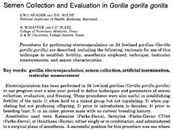 "Semen Collection and Evaluation in Gorilla gorilla gorilla," S.W.J. Seager, D.E. Wildt, N. Schaffer, and C.C. Platz, American Journal of Primatology, vol. 3, supp. 1, 1982, p. 13. [AIR 16:2]