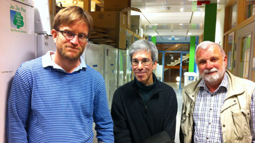 [This photo shows Ig Nobel Prize winners Magnus Wahlberg (left) and HakenWesterberg (right). Marc Abrahams, founder of the Ig Nobel ceremony, is in the middle. Westerberg is carrying a dead herring (not visible in the photo).]
