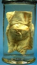Maggie Koerth-Baker, Boing-Boing's ace science observer, is doing a series of essays about "My Favorite Museum Exhibit". The Bishop of Durham's rectum, on which we have spent an inordinate amount of time and space, because it has a curious back story, is there. (Well, actually, the Bishop's bottom, what's left of it, is in the Hunterian Museum, in London. The photo here, from the museum, shows the rectum at its best.)
