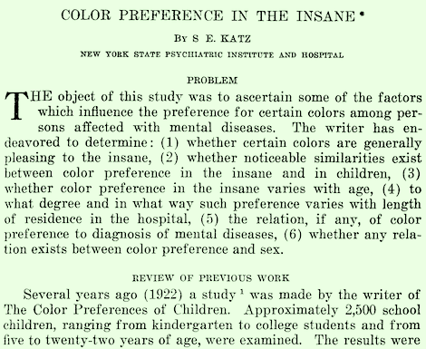 They found no "clear-cut relationship between color and psychiatric illness," and even questioned the use of color in diagnosis. And that was that. For all they cared, those patients who showed preference for some colors over others were, in all likelihood, well, insane.