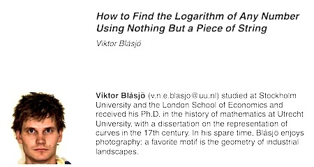 So wrote Viktor Blåsjö, in the essay “How to Find the Logarithm of Any Number Using Nothing But a Piece of String,” in the College Mathematics Journal, in 2016.
