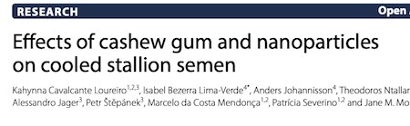 The number of published research studies about the effects of cashew gum and nanoparticles on cooled stallion semen has increased by one, with the arrival of this new study: