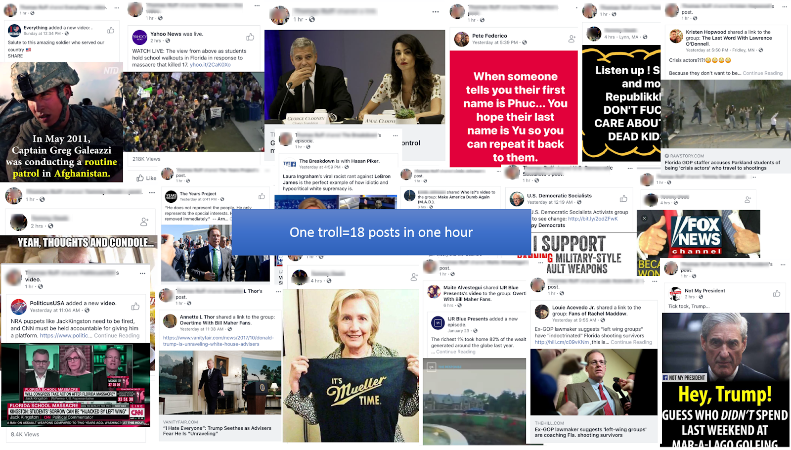 After the 2016 election, I added over 2000 Facebook "friends"—most of whom I believed were fellow liberals—in the hopes of filling my feed with like-minded posts. Little did my new friends and I know, many of these accounts were actually Kremlin trolls. Over time, they slowly wedged more and more into our social circles.