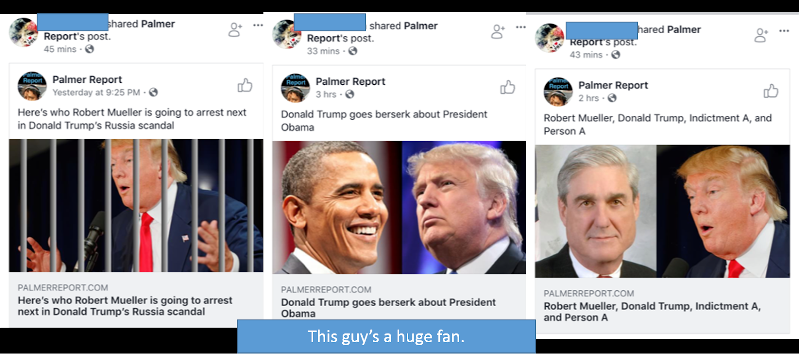 I’m not implying these accounts are run by trolls; however, many pages are. Facebook pages was how Putin got his start in the Facebook game. Accounts were simply created to push the page posts.