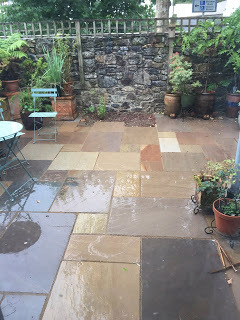 These were my main writing goals. I had reading goals (books to be read) and I have managed to read and review most of those I'd set myself to read this year. The other goals were non-writing ones but we also managed to have our garden decking replaced by paving! This had been on the cards for ages so we're really pleased to get it done and have it admired by several neighbours! And the great thing about it is, the rain really brings out the colours of the stones as you can see.