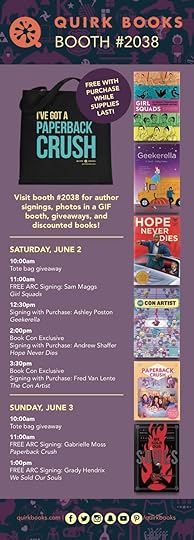 I will be signing special advance copies at the Quirk Books booth at this weekend's Book Con and Book Expo on both Thursday morning (10am) and Saturday afternoon (3:30pm). C'mon by and snag a copy!