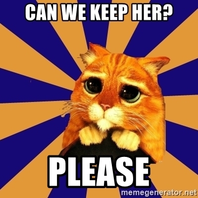 And SHE’S going to get better at take-down defense, I’m sure, since I’ll be constantly trying to take her down in sparring class. hahaha Then I’ll get better at foiling her defense, and she’ll foil my foil and the joyful circle will continue!
