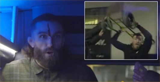 Um, WHAT?! Why would he be injured? Somebody said Conor McGregor broke a window in a bus and glass cut up his face.