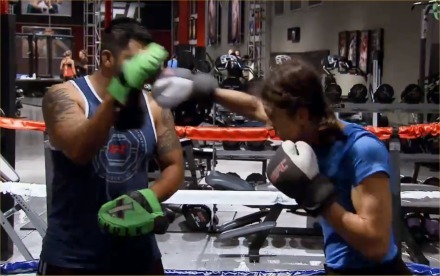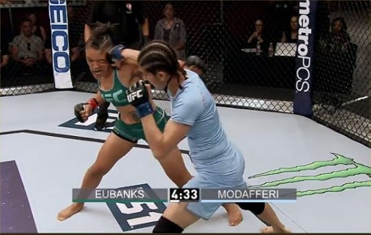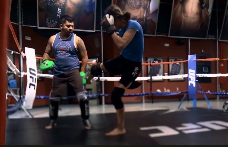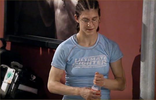 I got a link online to watch the last TUF episode, so I watched it on Monday. It’s always interesting to watch my own fights because I forget half of what happened and how it happened. My fight against Sijara was great, but since I lost, it made me feel really down. I knew I had to snap out of it since I would be fighting Barb that Friday. I tried. I’d been dieting, salt cutting, and water loading. My weight cut was going according to schedule. I got my final massage therapy from Teri and I felt great. In fact, I’ve never felt so great! I was also in great shape. I did my final set of running stairs. I reviewed the game plan with Coach John on mitts lightly. My mind was ready. My emotions were ready.
