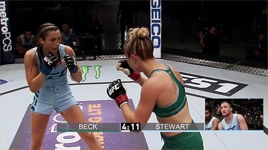 Our names hadn’t been announced so nobody knew we were the cast. We weren’t allowed to tell anybody, obviously, with a very expensive lawsuit hanging over our heads if we did. So the TUF staff led us out in groups of three to sit in the bleachers with other family and friends also invited. On the way to my seat…I think I sat with Maia and….someone? Shana or Sarj or Christina? One guy game up to me and said, “OH! Ultimate fighter!” I thought, “Does he suspect this season or recognize me from the last season?!” He came over. Other people started looking. Crap. “Hi,” I said. “You are a fighter, aren’t you?” “Uh,” I said. “What’s it like to live in the House?” (he still hadn’t used the past tense to let me know if it was season 18 or not). “Well,” I said, seriously, “I live in an apartment.” My housemates in earshot started snickering. “Uh, oh?” he said, confused. “So who are you rooting for tonight?” I said, and steered the conversation away. LOL