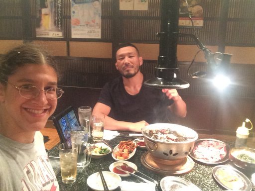 I went straight to Groundslam after the event, but afternoon pro practice had already ended, so I stretched out with Nori-p and a few others, and then went home. Later that evening, I met Kunioku-san, my former striking coach, in Yokohama and we ate Yaki niku together. It’s always fun chatting with him.