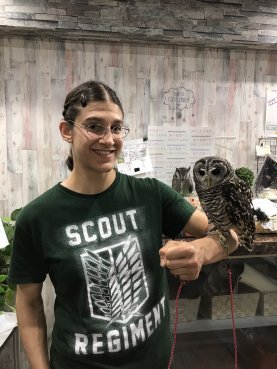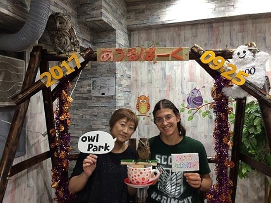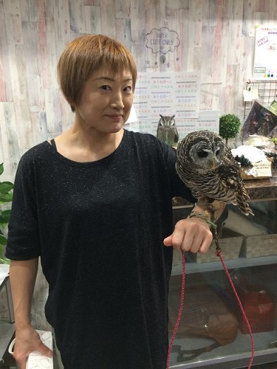 “Okay open!” she said. We were at an owl cafe! Or “Owl Park!”