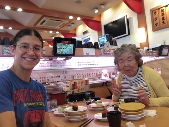 Tuesday morning, I think I just went shopping by myself. I met my former host mother, and co-star of my autobiography Sadako-san for sushi lunch! I offered to go closer to her, but she said she liked to get out and came to Hirama, near Kawasaki. She’s basically my Japanese grandmother. I love her! She’s so sweet and awesome! She gave me bowls and chopsticks for presents!!