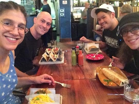 I asked a staff guy running around if I had another match, and he said “no” without checking my name or any papers. hmmm uh…okay. My head was spinning, still in fight mode. My friends were telling me to go pick up my gift bag, and I started thinking about making it on time to teach my kids class. We left and went to eat tacos. That was nice.