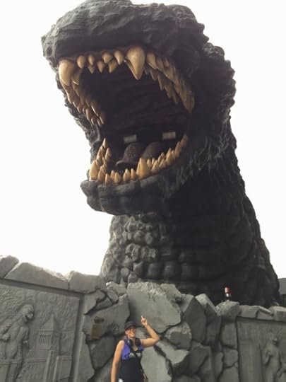 We went up there and took pics next to the big head. Then we found the actual Godzilla store!
