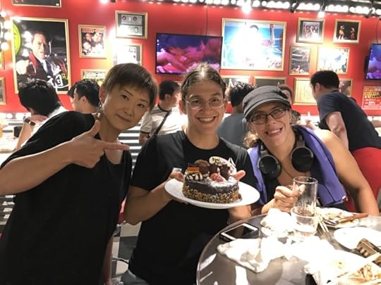 Sakura-chan also got me a big chocolate cake and got the staff to make the whole restaurant sing happy birthday to me. She said, “Make sure you announce that it’s Roxanne the UFC FIGHTER’s birthday!” lol How sweet, making a big deal out of the UFC thing… I would have thought I’d be shy about that, but since getting into the UFC has been a career goal of mine for 15 years, I was so happy!