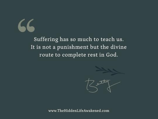 Suffering has so much to teach us. It is not a punishment but the divine route to complete rest in God. ~Betty