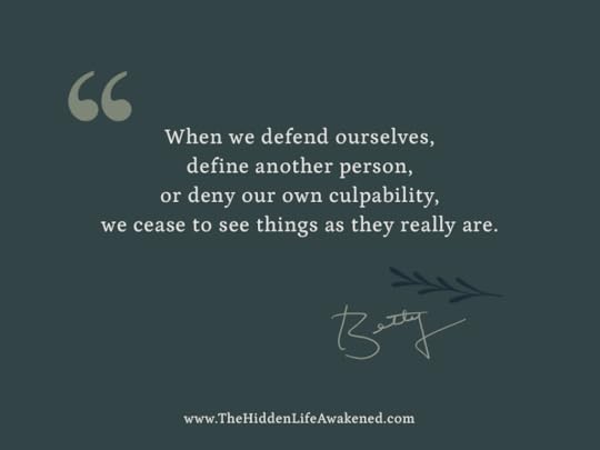 When we defend ourselves, define another person, or deny our own culpability, we cease to see things as they really are. ~Betty