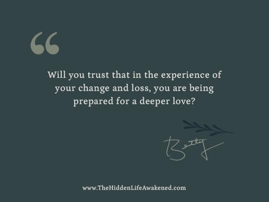 Will you trust that in the experience of your change and loss, you are being prepared for a deeper love? ~Betty