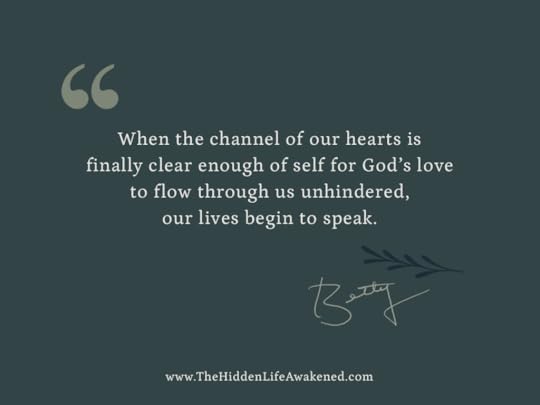 When the channel of our hearts is finally clear enough for God’s love to flow through us unhindered, our lives begin to speak. ~Betty