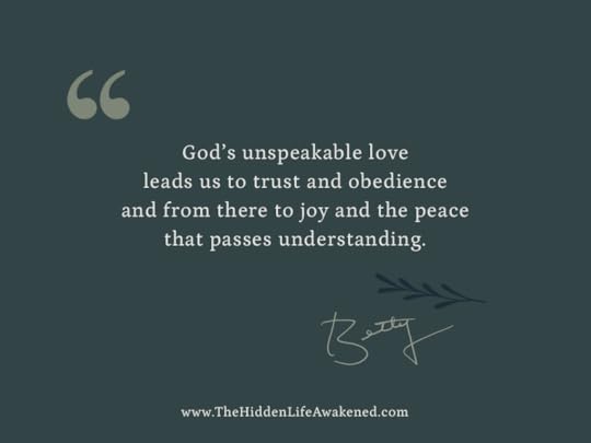 God’s unspeakable love leads us to trust and obedience and from there to joy and the peace that passes understanding. ~Betty