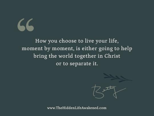 How you chose to live your life, moment by moment, is either going to help bring the world together in Christ or to separate it. ~Betty