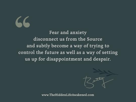 Fear and anxiety disconnect us from the Source and subtly become a way of trying to control the future as well as setting us up for disappointment and despair. ~Betty